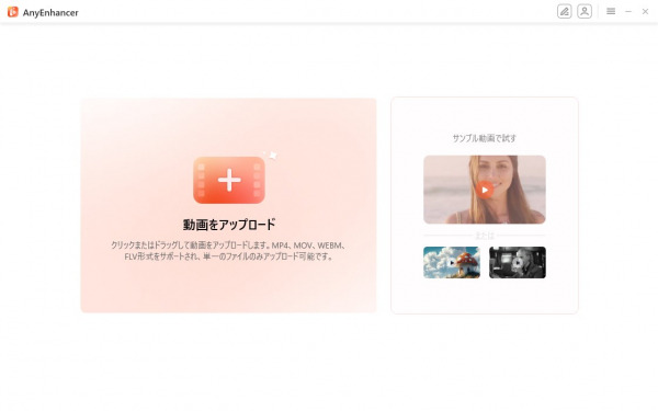 ステップ1: AnyEnhancerを起動し、アップスケーリングしたい動画を選択してアップロードします。
