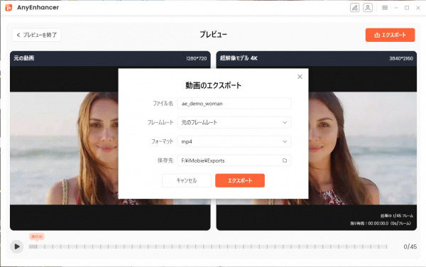 ステップ4: 「エクスポート」ボタンをクリックし、変換された高画質動画を保存します。