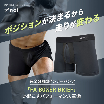 not合同会社(本社:東京都、代表:矢口雅幸)は、国内クラウドファンディング歴代1位を獲得した※1完全分離型スポーツ用インナーパンツ「FA BOXER BRIEF(日本語訳:エフエー ボクサーブリーフ)」※2のクラウドファンディングをクラウドファンディングプラットフォームmachi-yaで10月19日から実施します。