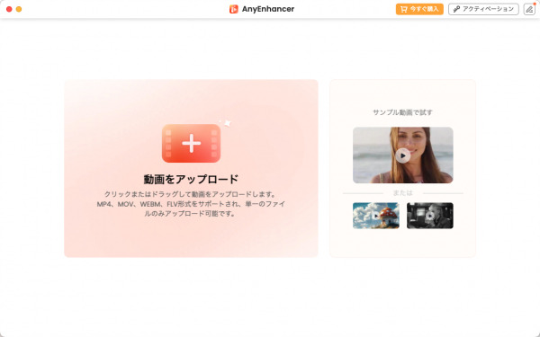 step1:パソコンでAnyEnhancerを起動し、ぼかしを除去したい動画をアップロードします。