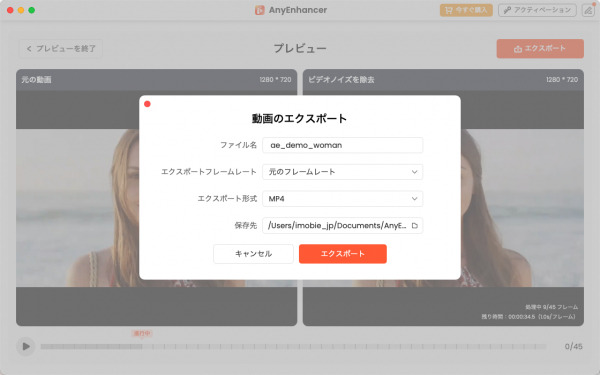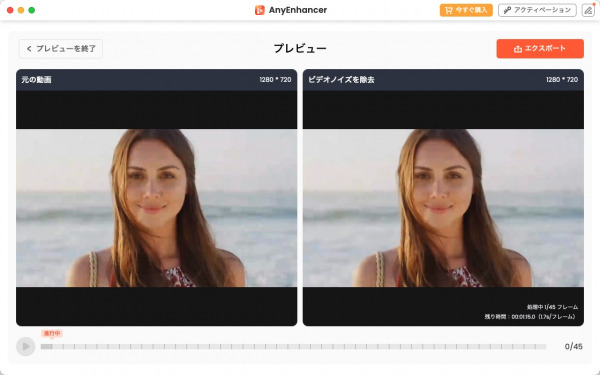 step3:動画効果をプレビューし、ぼかしを除去された動画をエクスポートできます。