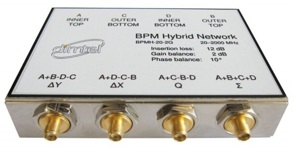 BPMH-20-2Gは、粒子加速器やレプトン蓄積リングにおけるバンチ毎のフィードバックと診断に最適化された8ポートのパッシブRF信号変換機です。この装置は、入力信号の合計と差分を計算し、対角に配置されたビームポジションモニター(BPM)から出力される信号を処理します。