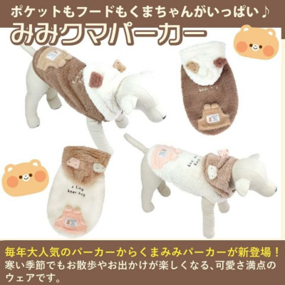 <ペットクイーン 犬服 くま耳 フリース パーカー みみクマパーカー+犬用 おもちゃ セット>