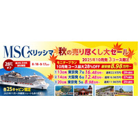 クルーズ予約サイト「ベストワンクルーズ」、8/18より、「MSCベリッシマ秋の売り尽くし大セール」を開始いたしました