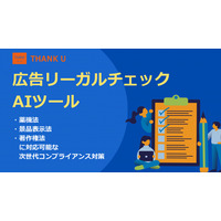 面倒な広告リーガルチェックをAIで自動化|株式会社サンクユー、広告リーガルチェックAIツールを提供開始|薬機法・景品表示法・著作権法に対応、広告表現の安全性を瞬時に診断