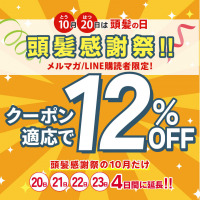 10月20日の「頭髪の日」を記念し、リーブ21公式通販サイト「リーブ直販」で特別キャンペーンを実施。メルマガ・LINE購読者限定で、全商品12%OFFクーポンを4日間限定配布します!