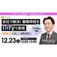 【Dify活用ウェビナー】株式会社バイタリフィ、「自社で解決!業務時短をDifyで実現」を2025年12月23日(火)12:00に開催