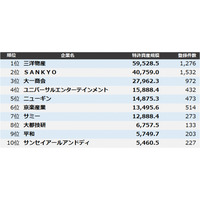【遊技機】特許資産規模ランキング2025 トップ3は三洋物産、SANKYO、大一商会