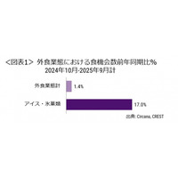 サカーナ・ジャパン、最新外食・中食レポート「外食業態でアイス・氷菓類が17%増、2024年10月-2025年9月計、食機会数の前年同期比」を公表