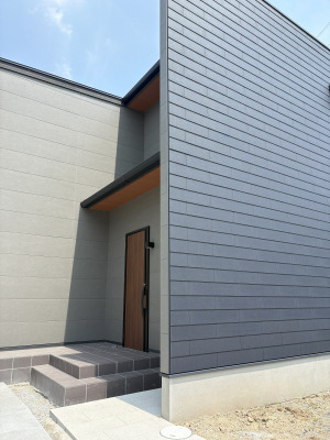 ※ラップウォール:複数の板材を横方向に重ね張りする外壁仕上げの一種。工業製品と天然素材を組み合わせることで、耐久性・耐候性を確保しつつ、自然な素材感と陰影のある意匠を実現できる。近年は意匠性とメンテナンス性を兼ね備えた外壁材として住宅施工に採用が広がっている。