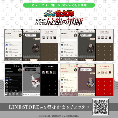 「劇場版 忍たま乱太郎 ドクタケ忍者隊最強の軍師」のキャラクター別ver.のLINE着せかえ第4弾がインクルーズの販売アカウントより4点一斉に配信開始!キャラクター別ver.のLINE着せかえ第1弾は、「猪名寺乱太郎」、「摂津のきり丸」、「福富しんべヱ」、「土井半助」、「山田伝蔵」、「山田利吉」の5点が7月10日(木)に配信開始し、LINE着せかえ第2弾は、五年生の「久々知兵助」、「尾浜勘右衛門」、「不破雷蔵」、「鉢屋三郎」、「竹谷八左ヱ門」の5点が7月17日(木)に配信開始しました。そして、LINE着せかえ第3弾は、六年生の「潮江文次郎」、「立花仙蔵」、「中在家長次」、「七松小平太」、「善法寺伊作」、「食満留三郎」の6点が7月24日(木)に配信開始いたしました。