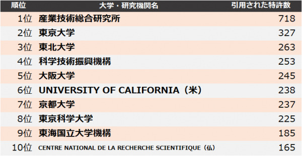 4位 科学技術振興機構は「ラマン分光法を用いた生体分子の解析方法」、5位 大阪大学は「ヒト幹細胞の安定培養を可能にする細胞培養器具」が、最も引用された特許として挙げられます。
