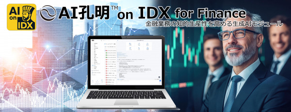 このたび私たちは、 次世代AIプラットフォーム「AI孔明 on IDX」の業界別モジュールとして、 金融機関向けの『AI孔明 on IDX for Finance』をリリースしました。