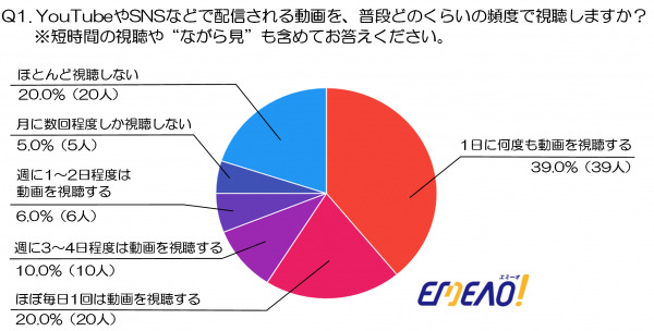 調査結果1:YouTubeやSNSなどで配信される動画を、普段どのくらいの頻度で視聴しますか?※短時間の視聴や“ながら見”も含めてお答えください。