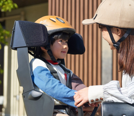 当社は、自転車用チャイルドシートメーカーのパイオニアとして「すべての子どもを自転車事故から守りたい」と、2016年に「ケガゼロミッション」を立ち上げ、事故事例の収集・検証、製品開発や啓発活動に取り組んでいます。重症時の受傷部位は9割以上が顔や頭であることから、頭部を270度守るアラウンドヘッドガードを採用した「グランディア」を2019年に発売。さらにリブ構造で衝撃を吸収し、重症化リスクを約80%軽減する「ZEROTECT(ゼロテクト)」を開発し、ヘッドガードに搭載した「グランディアゼロ」を2023年に発売しました。ケガを防ぐのに重要なシートベルトも、着脱時のわずらわしさを解消し、フィット感や装着率を高める工夫を凝らし、進化し続けています。