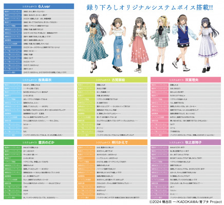 本コラボレーションモデルは、作品をイメージしたモチーフデザインを左右ハウジングプレートに配置。新規録り下ろし音声ガイダンスは「桜島麻衣」「古賀朋絵」「双葉理央」「豊浜のどか」「梓川かえで」「牧之原翔子」「全員ver」の中から1つ選択可能で、お選び頂いた音声ガイダンスを搭載しお届け致します。電源オンやオフ、ペアリング時やタップ音等、それぞれ計15ワードのボイスを楽しめます(全員verのみ18ワード)。ヘッドホンお届け時期に専用アプリ「ANIMA Studio」にて各音声ガイダンスのDL販売を予定しております。「青春ブタ野郎」シリーズヘッドホンご購入者のみDL購入が可能で、初期搭載ボイスに加え、DL購入ボイスも楽しめる仕様となっております。