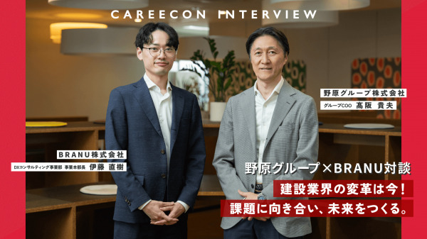 「建設業界をテクノロジーでアップデートする。」をビジョンとして掲げるBRANU株式会社(本社:東京都港区 / 代表取締役社長:名富 達哉 / 以下ブラニュー)は、「CHANGE THE GAME. クリエイティブに、面白く、建設業界をアップデートしていこう」をミッションに掲げる野原グループ株式会社(本社:東京都新宿区 / 代表取締役:野原 弘輔)と対談を実施し、記事を8月19日に公開しました。