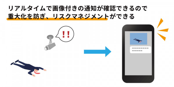 AIカメラが倒れ込みや転倒を検知し、すぐにスマートフォンに通知します。