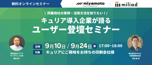 本セミナーでは、キュリア導入企業の株式会社みやもと様にご登壇いただきます。