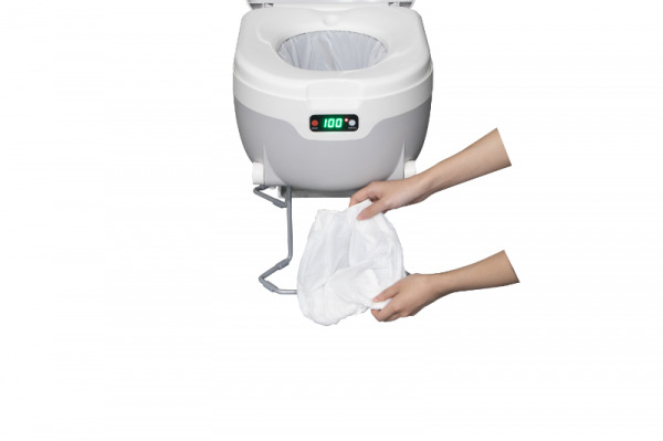 ラップポン・サニーは、水を一切使わずに、排泄物を熱圧着で密封する革新的なポータブルトイレです。
