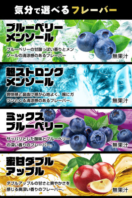 CBD配合の持ち運びシーシャ。CBD25%でフレーバーは「ブルーベリーメンソール」、「超ストロングメンソール」、「ミックスブルーベリー」、「蜜甘ダブルアップル」の4種類の展開となります。