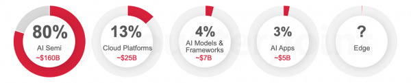現在、AI関連の価値の大部分は、ハイパースケーラー、ティア2クラウド事業者、そしてAIインフラの構築を急ぐ企業などの半導体企業に蓄積されています。GPUやアクセラレータからメモリ(HBM、DDR)、光インターコネクトに至るまで、チップはAI経済の基盤であり、クラウドプラットフォーム、モデル、フレームワーク、アプリケーションなど、あらゆるものを動かしています。