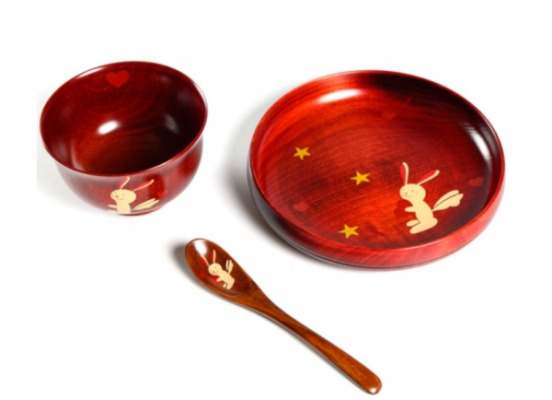 アニマル柄お食事セット 茜 ~木製 漆塗り