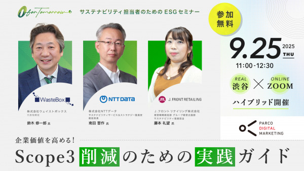また、今回は、J.フロント リテイリング株式会社のサステナビリティ推進担当を交え、脱炭素経営の取り組みと「Scope3の削減にむけた目指すべき姿」についてトークセッションを行います。