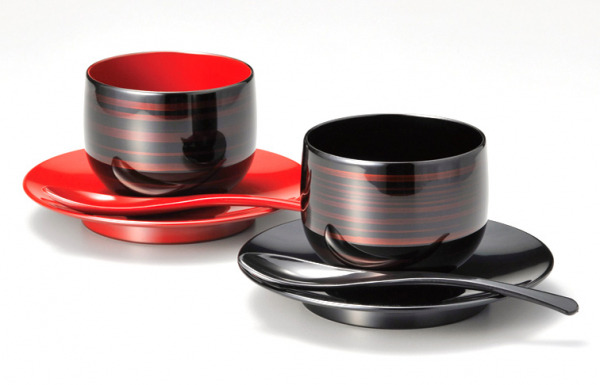 カップ・ソーサーペアセット 彩波 白檀 スプーン付き 漆塗り~結婚祝いに最適