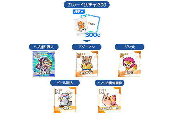 イベント期間中は、「オキコレ」タブの300ガチャギフト内にアフリカ魔偉魔偉たちが大量出現!