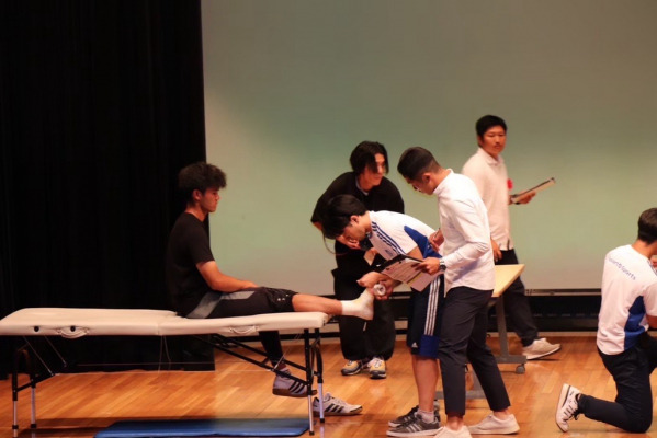 グループエクササイズ、トレーニング指導、テーピングなど、日々の学びの習熟度を図る発表を行います。授業内予選を勝ち抜いた選手が、横浜校ナンバーワンの座を競います。