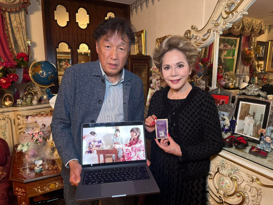 行く先々の首脳や宗教的な権威のある方々に面会させていただき、平和の象徴である広島長崎原爆投下の出来事がその由来となる「禎子の折り鶴」のレプリカを寄贈させていただくことでピースラリーのクラシックカーが乗せた「平和」への想いを伝播させていくことも、平和活動家である樽谷大助のライフワークの一つとなっている友情出演のデビィ夫人。映画「サダコの鶴」アフレコ収録時の一枚。