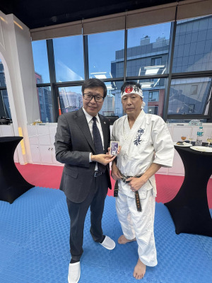 ナランバヤル モンゴル国教育大臣と国会議員のGalbadrakhさんにG7広島サミットで配られた「禎子の折り鶴」のレプリカを寄贈し、再び核の悲劇が訪れないよう禎子さんの思いを伝えました。
