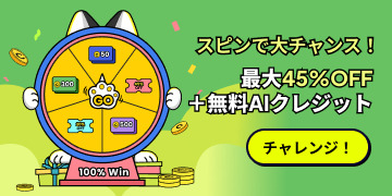最大60%OFFの割引、AIクレジットプレゼント、抽選イベント、公式動画参加企画 など、多彩な特典と体験が用意されています。