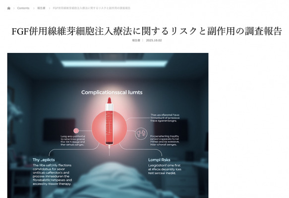 本報告は、自己線維芽細胞移植や多血小板血漿(PRP)療法にFGFを併用した症例を中心に、臨床現場からの副作用報告、公的機関および関連学会の見解、ならびに国内外の研究知見を体系的に整理したものです。