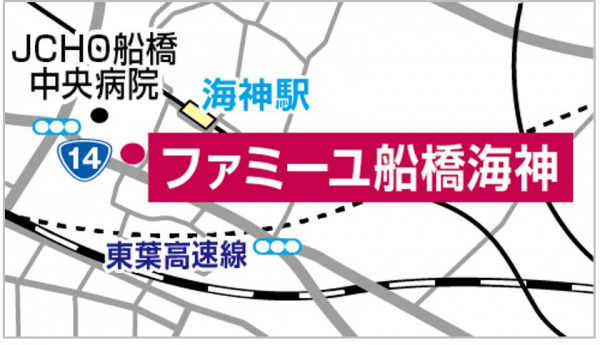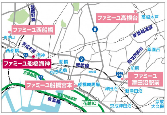 (地図)船橋市内のファミーユホールは累計5店舗の展開となる