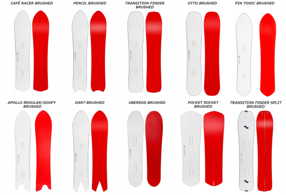 今シーズンはブラッシュドトップシートと伝統的に持続してきたグロストップシートの両方をご用意しています。「すべてのスノーボードは、美しさと喜びのために」我々は、スノーボーダーたちのライディングを向上させるために心を込めて製品作りを行っています。