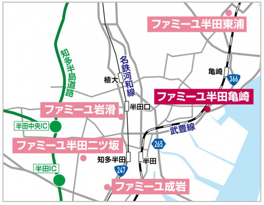 (地図)半田市内の家族葬のファミーユホールは累計5店舗の展開となる