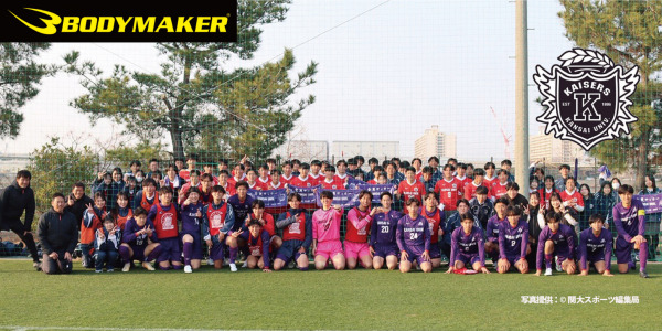 これまで数多くの選手・団体をサポートしてきたBODYMAKERは、各競技のトレーニングアイテムを強化・拡大しており、互いに地元関西(大阪府吹田市)を盛り上げるためタッグを組んで“頂点を目指そう”とパートナーシップ契約を結んだ。契約内容は、BODYMAKERが関西大学体育会サッカー部へアイテムを提供し、関西大学体育会サッカー部は、BODYMAKER撮影モデル(サッカー部員)として撮影を提供する。