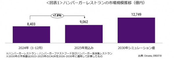 ハンバーガーレストランの2025年市場規模は9062億円、前年同期比7.8%増加