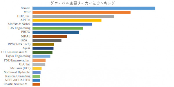LP Informationのトップ企業研究センターによると、海岸工学と水文学モデリングの世界的な主要製造業者には、Stantec、WSP、HDR, Inc.、APTIM 、Moffatt & Nichol、LJA Engineering、PRDW、NIRAS 、GZA GeoEnvironmental、RPS (Tetra Tech)などが含まれている。2024年、世界のトップ5企業は売上の観点から約38.0%の市場シェアを持っていた。