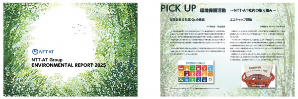 本報告書は、NTT-ATグループが持続可能な社会の実現に向けた環境活動を広く公開するために毎年発行されているもので、今回、「環境保護活動 ~NTT-AT社内の取り組み~」の事例として10ページに紹介いただきました。