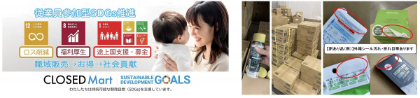 社会貢献型職域販売サイト「CLOSED Mart」 では、賞味期限間近や一般流通が難しい食品、ブランド毀損や値崩れを防ぐために止むを得ず破棄される商品を安価で購入でき、売上の一部が生活困窮者支援団体や途上国の子供達への支援として寄附されます。