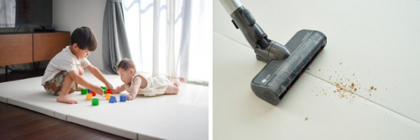 現代の育児家庭では、共働きや核家族化が進む中、掃除や衛生管理に割ける時間が限られています。床に敷くマットには「溝にゴミがたまる」「掃除がしにくい」「収納に困る」などの課題がありました。