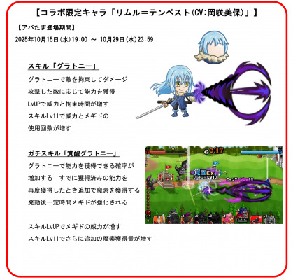 ※その他の「転スラのアバたま」に関する詳細はゲーム内お知らせに記載されておりますので、必ずご確認ください
