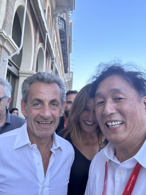 (弊社CEO樽谷大助氏とサルコジ元大統領)