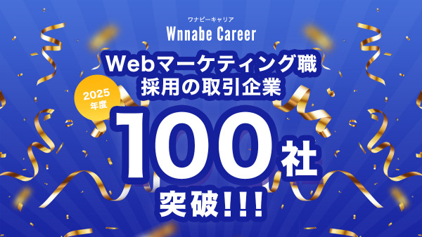 昨今、即戦力人材へのニーズが高まるなか、「実践力のある即戦力人材を採用したい」という企業の声に応え、Webマーケティングスクール「Wannabe Academy(ワナビーアカデミー)」と連携した独自のキャリア支援体制が高く評価されています。その結果、Wannabe Career(ワナビーキャリア)の取引企業数は累計100社を突破し、多くの企業で導入が進んでいます。