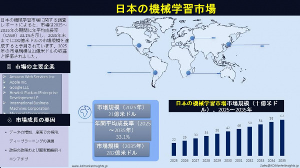 クラウドコンピューティング基盤の整備、データサイエンス分野の熟練人材、国内企業とグローバルテック企業の強固なパートナーシップが、日本の機械学習市場拡大を後押ししています。