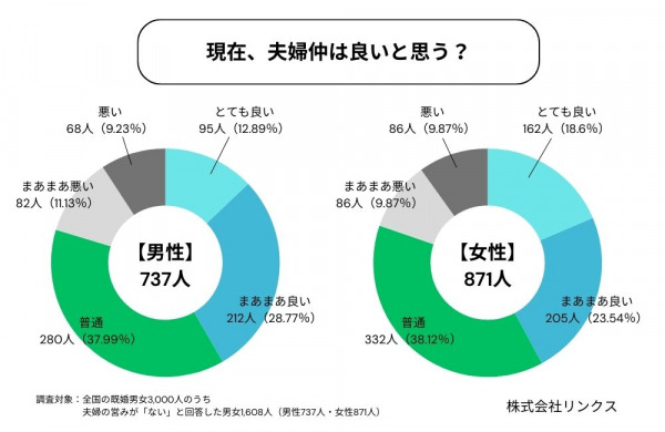 子どもがいることで関係が冷え込んでも、簡単に別れられない現実が表れているのかもしれません。