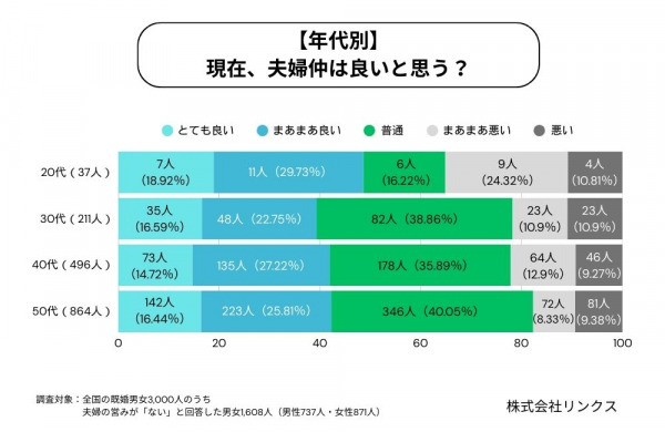 ・営みがなくても「仲が良い」と答えた人は全体の42%。一方で「仲が悪い」も2割。